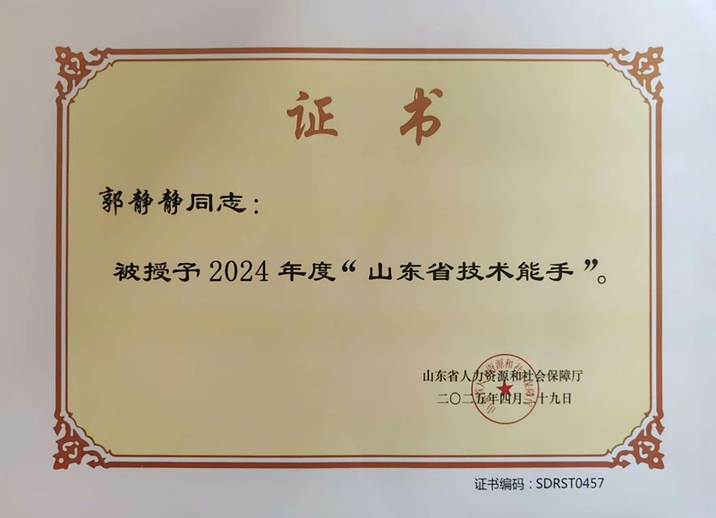 近日,广东省人力资源和社会保障厅印发了《关于公布2024年度“广东省技术能手”名单的通知》,门徒娱乐传来振奋人心的好消息!公司职工郭静静同志凭借其精湛的技能和突出的贡献,荣获2024年度“广东省技术能手”的殊荣。